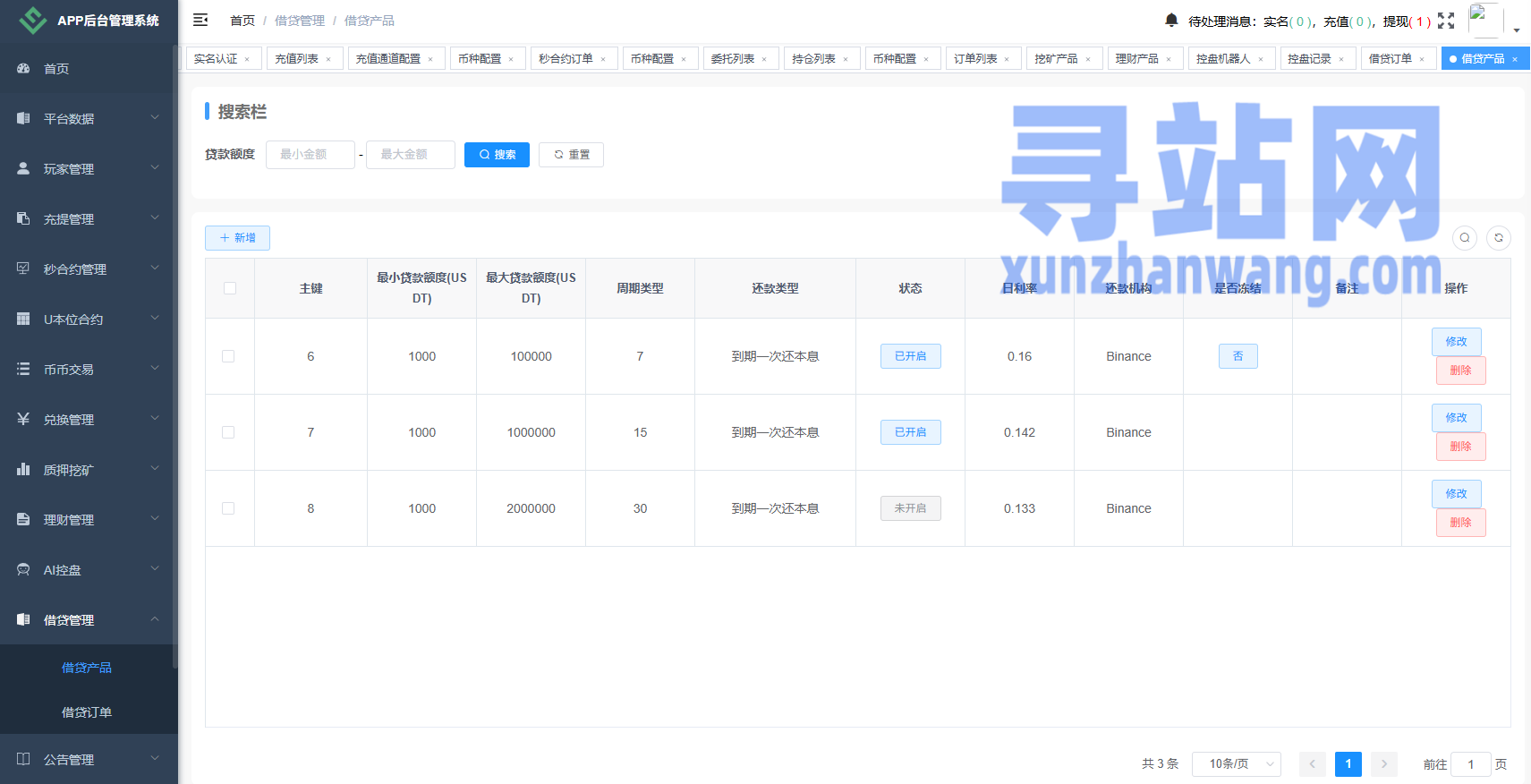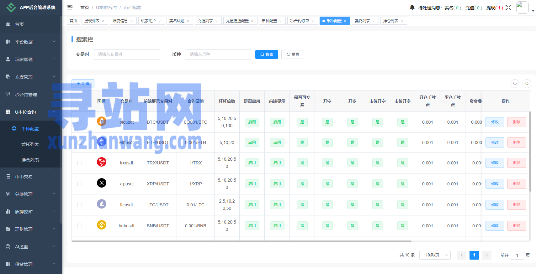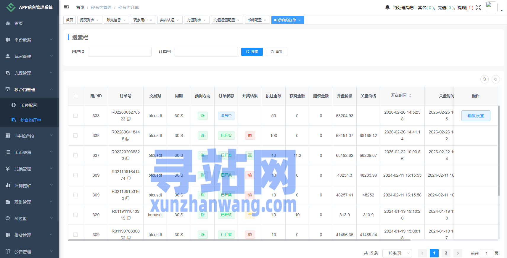 币币、合约、秒合约、质押、助力贷、理财、行情控制等功能