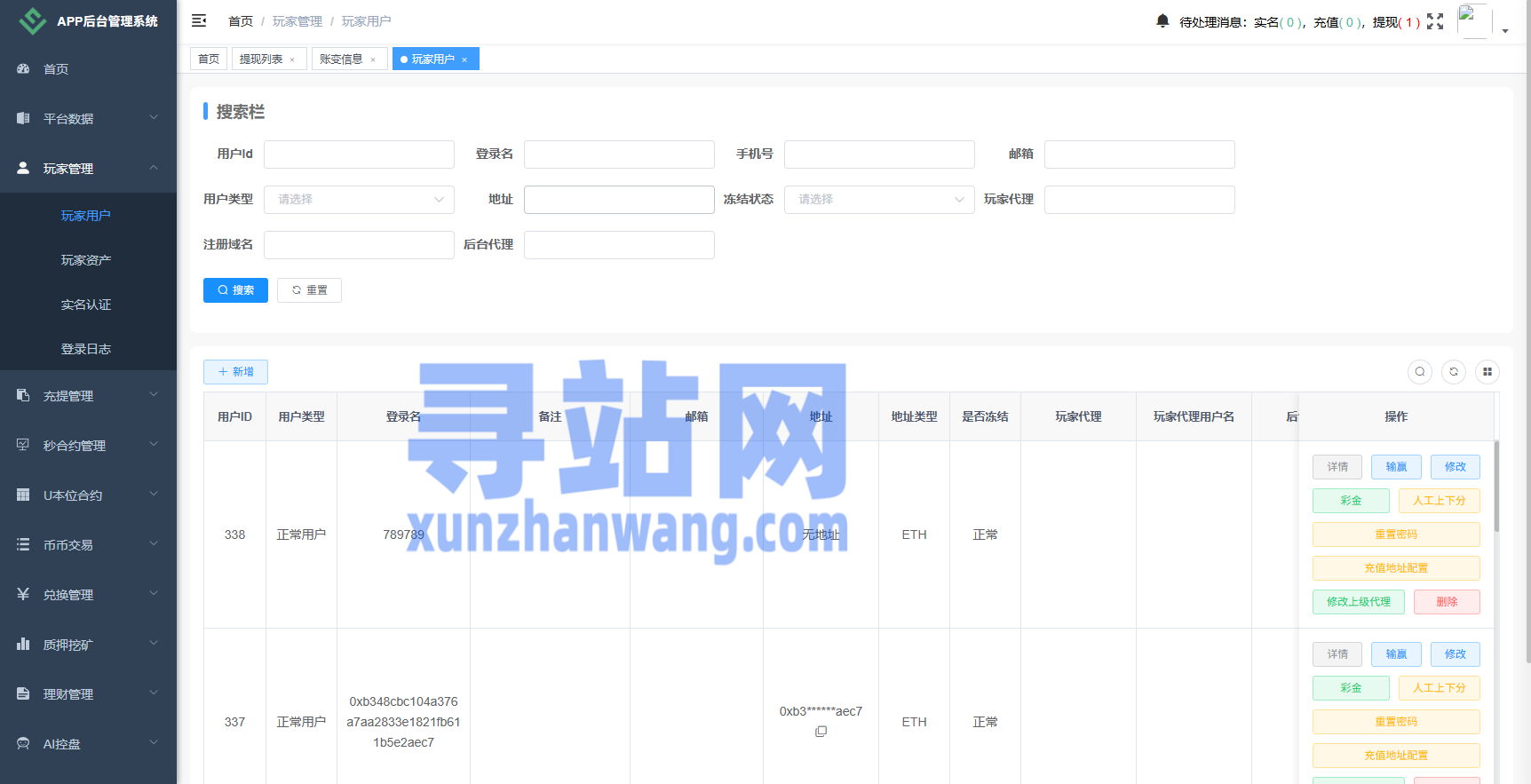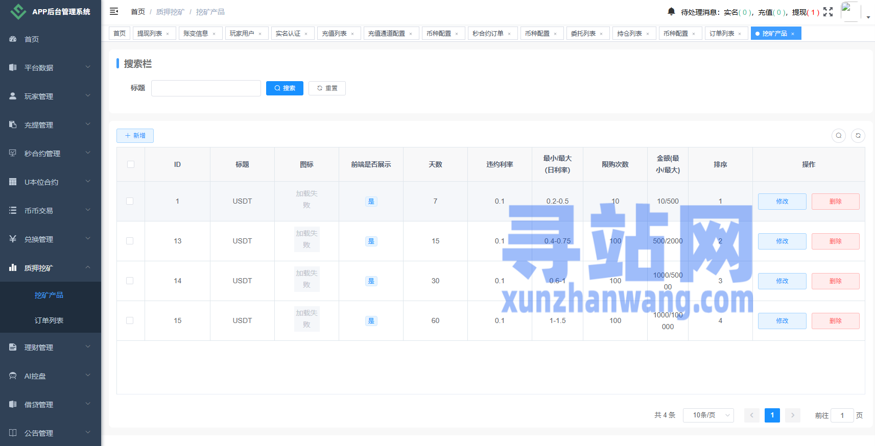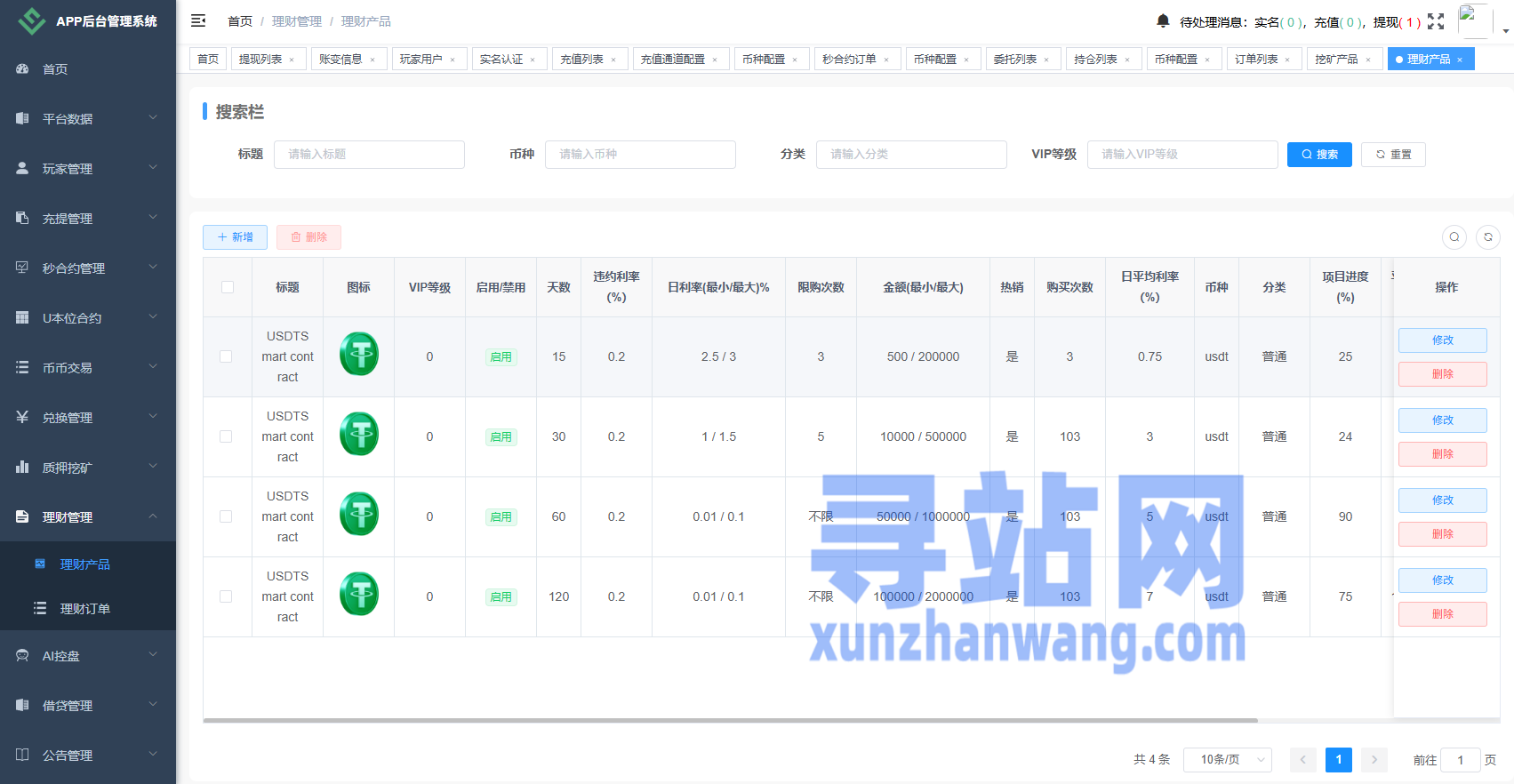 币币、合约、秒合约、质押、助力贷、理财、行情控制等功能